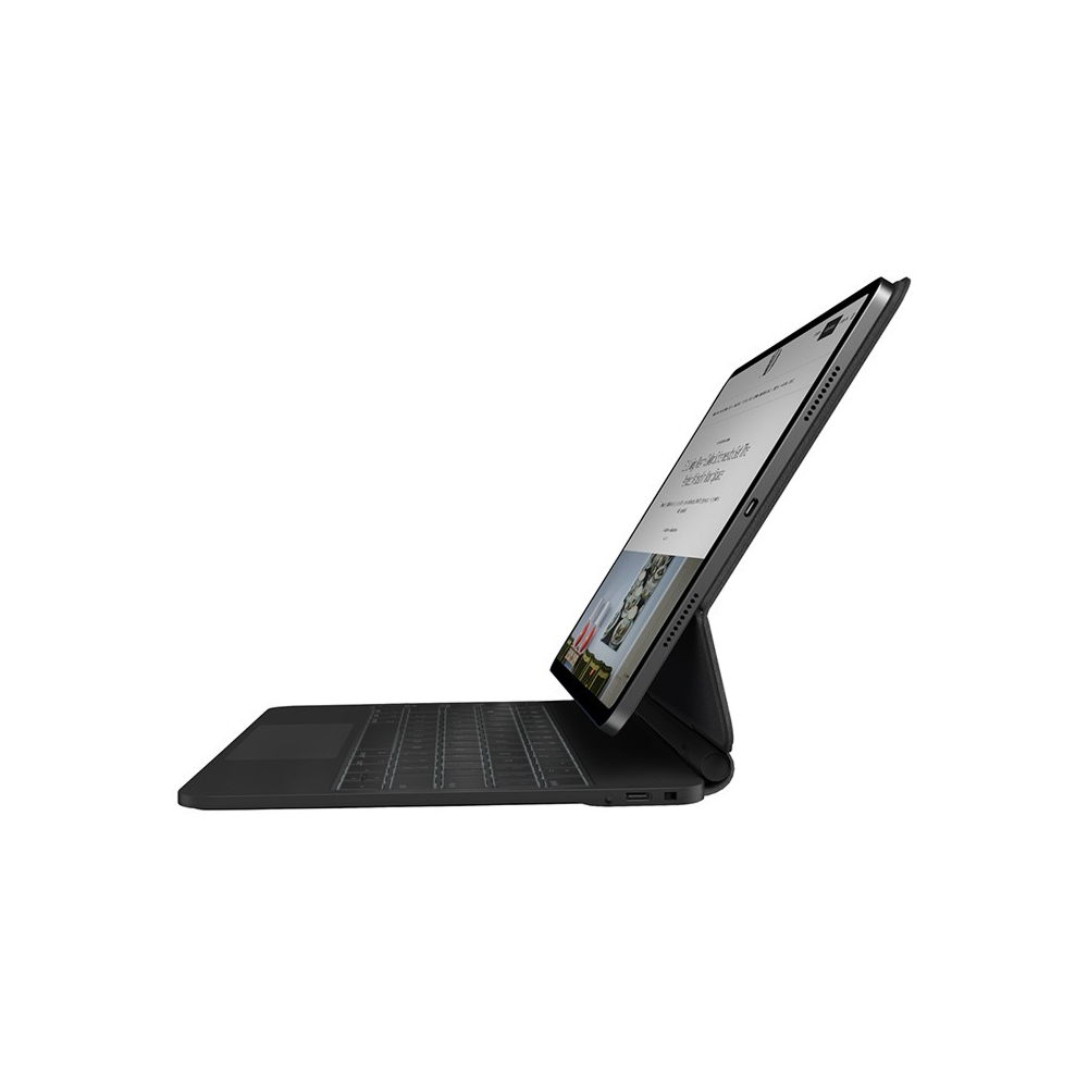 Плавающий консольный дизайн позволяет подключать iPad к компьютеру и мгновенно повышать производительность. Чехол поддерживает планшет под эргономичным углом и обеспечивает 3 уровня яркости подсветки клавиатуры. Удобное сопряжение с вашими устройствами осуществляется всего одним нажатием кнопки. Полноценная клавиатура от края до края дает возможность быстрого и удобного набора текста, где бы вы ни работали.